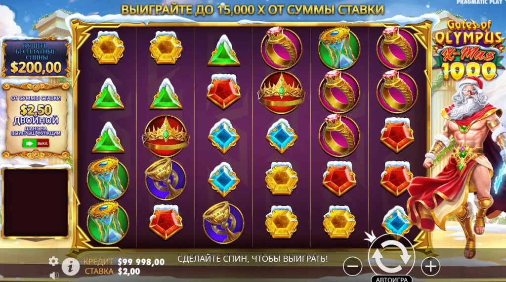 Pragmatic Play has introduced a festive version of its popular slot — Gates of Olympus Xmas 1000. This New Year’s slot machine combines the familiar mechanics of the original game with a festive atmosphere and increased multipliers up to x1000.