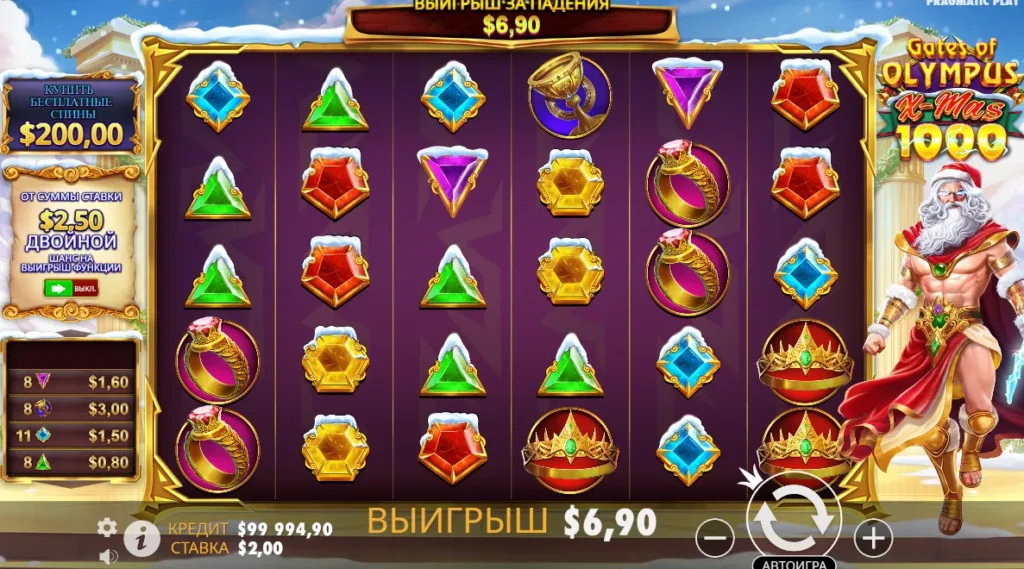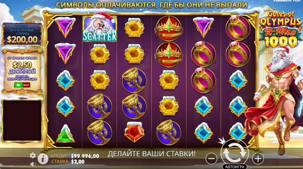 Impressions of the game: Visually, the slot looks fresh — Zeus in a Santa Claus costume looks amusing, and snowy Olympus creates a festive atmosphere. The gameplay remains just as exciting thanks to the cascading payouts system and cumulative multipliers in the bonus.