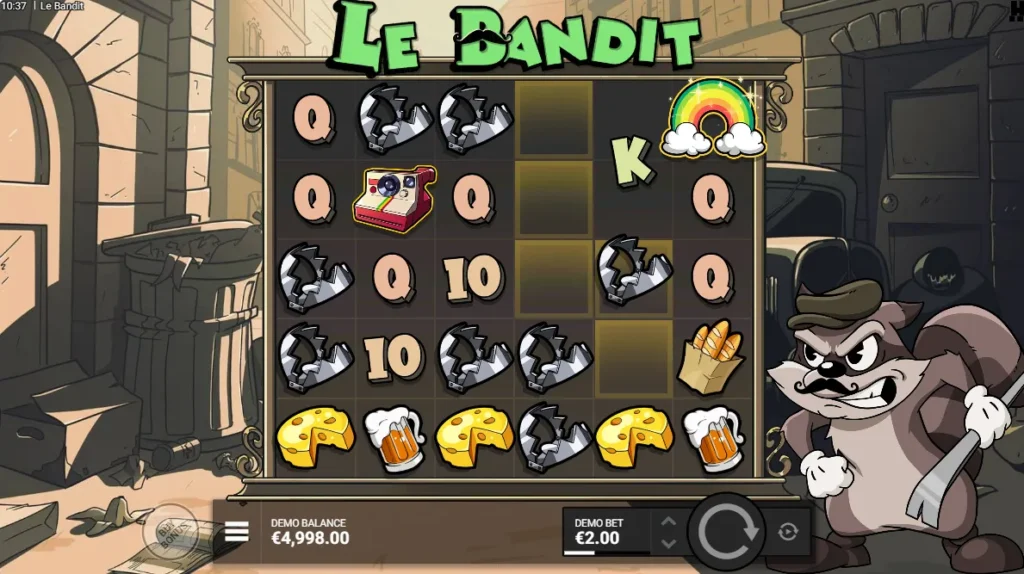 One of the key features of Le Bandit is the cascading drops function. After a winning combination is formed, all symbols involved in the win, as well as all similar symbols on the field, disappear. New symbols fall into their place, which can lead to the formation of new winning combinations.